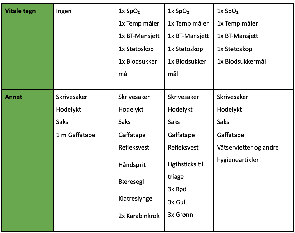 Hvilket utstyr bør du ha tilgjengelig og hvordan skal det organiseres?