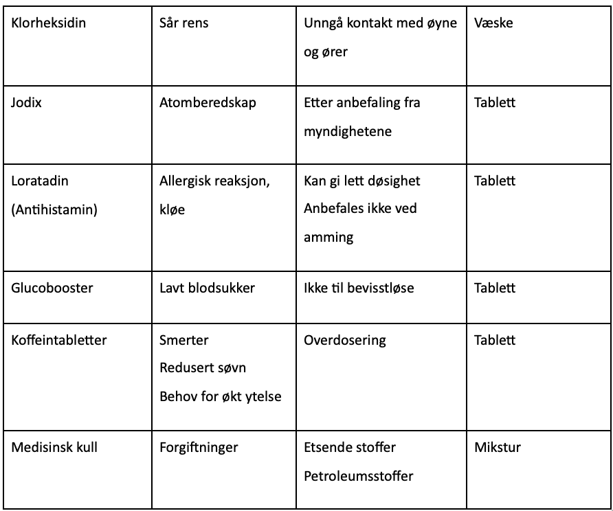 Reseptfrie medikamenter som kan kjøpes i butikk eller på apotek, for beredskap til hverdags, krise og krig.