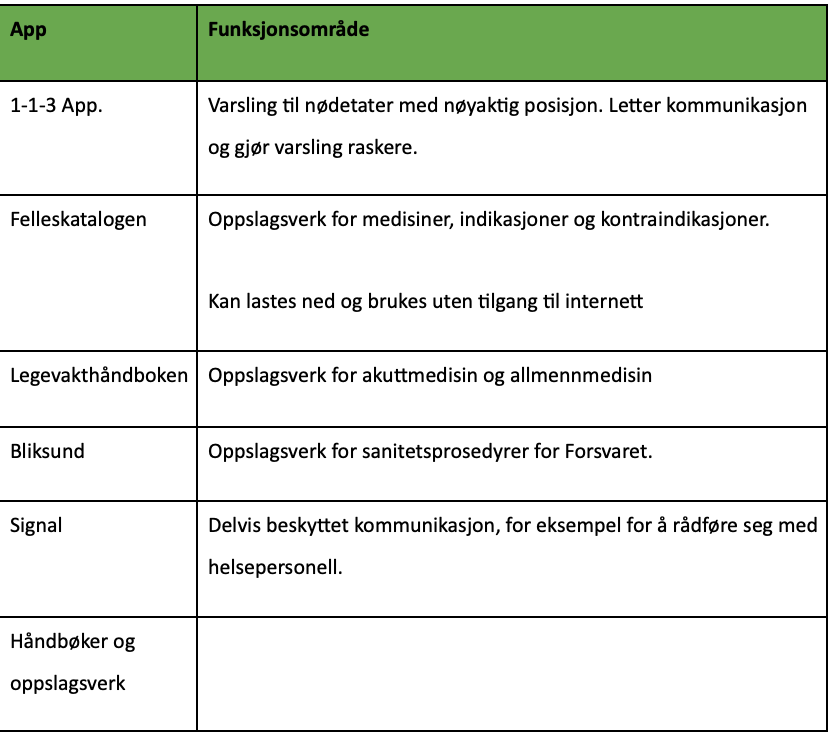 Vi anbefaler å laste ned relevante apper og oppslagsverk for økt egenberedskap. Bortfall av strøm, internett og mobilnett kan vanskeliggjøre varsling og tilgang til informasjon. Elektroniske oppslagsverk og bøker kan være en viktig ressurs for livreddende kunnskap. Enkelte av disse appene kan lastes ned og benyttes offline på telefon, nettbrett og lignende.