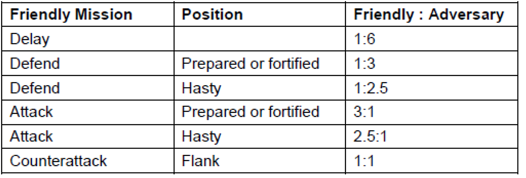 Gjennomfør så en relativ kampkraftanalyse for å avdekke hvilke type operasjoner som egne og motstanderen kan utføre, samt identifisere relative fordeler og ulemper. Konklusjonene er førende for handlemåteutviklingen.