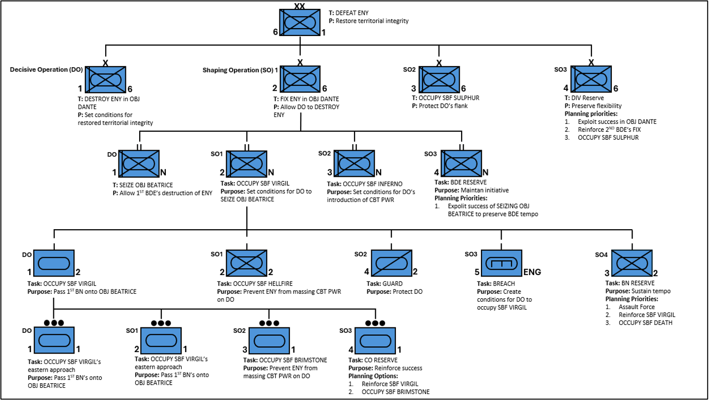 Når AO og FOer er identifisert og gitt en hensikt, validerer plangruppa vertikal integrasjon og taktisk oppdragsgrafikk tegnes inn.